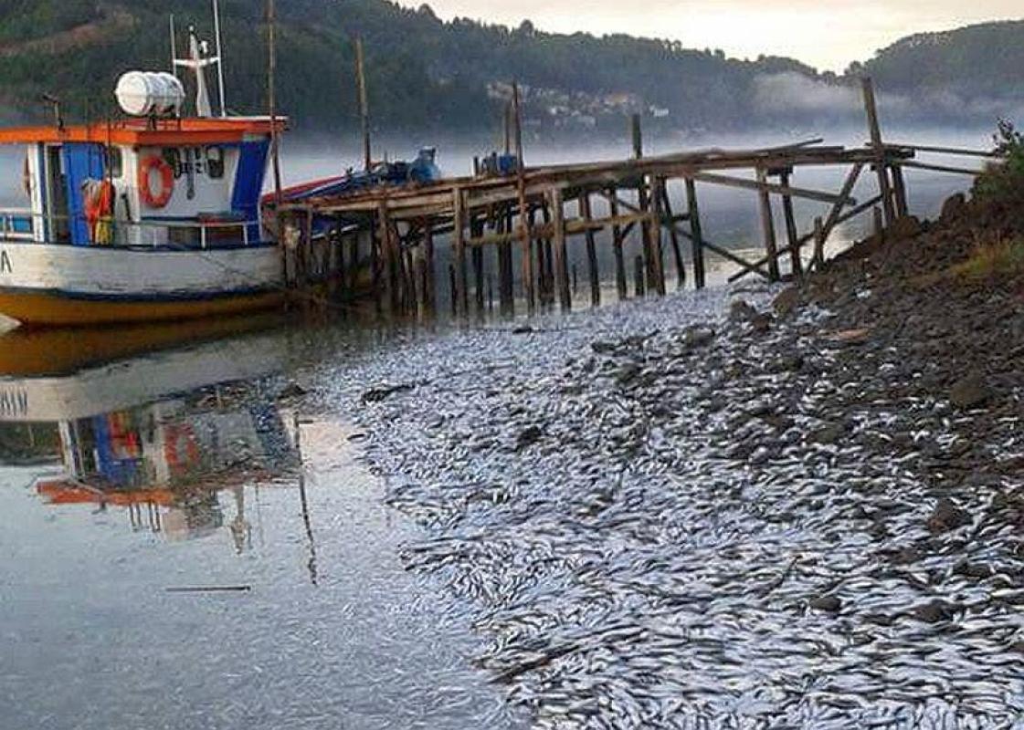 Miles de peces muertos fueron arrastrados hasta las orillas de río generando riesgo sanitario para los habitantes de la caleta de pescadores.