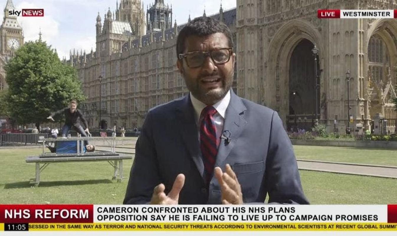 Para todo periodista es sabido que durante un despacho en vivo pueden ocurrir algunas interrupciones, pero magia...eso es poco probable. Mientras el periodista de la cadena británica Sky News se encontraba despachando en el Parlamento de Westminster, un par de magos se ubicó a sus espaldas.