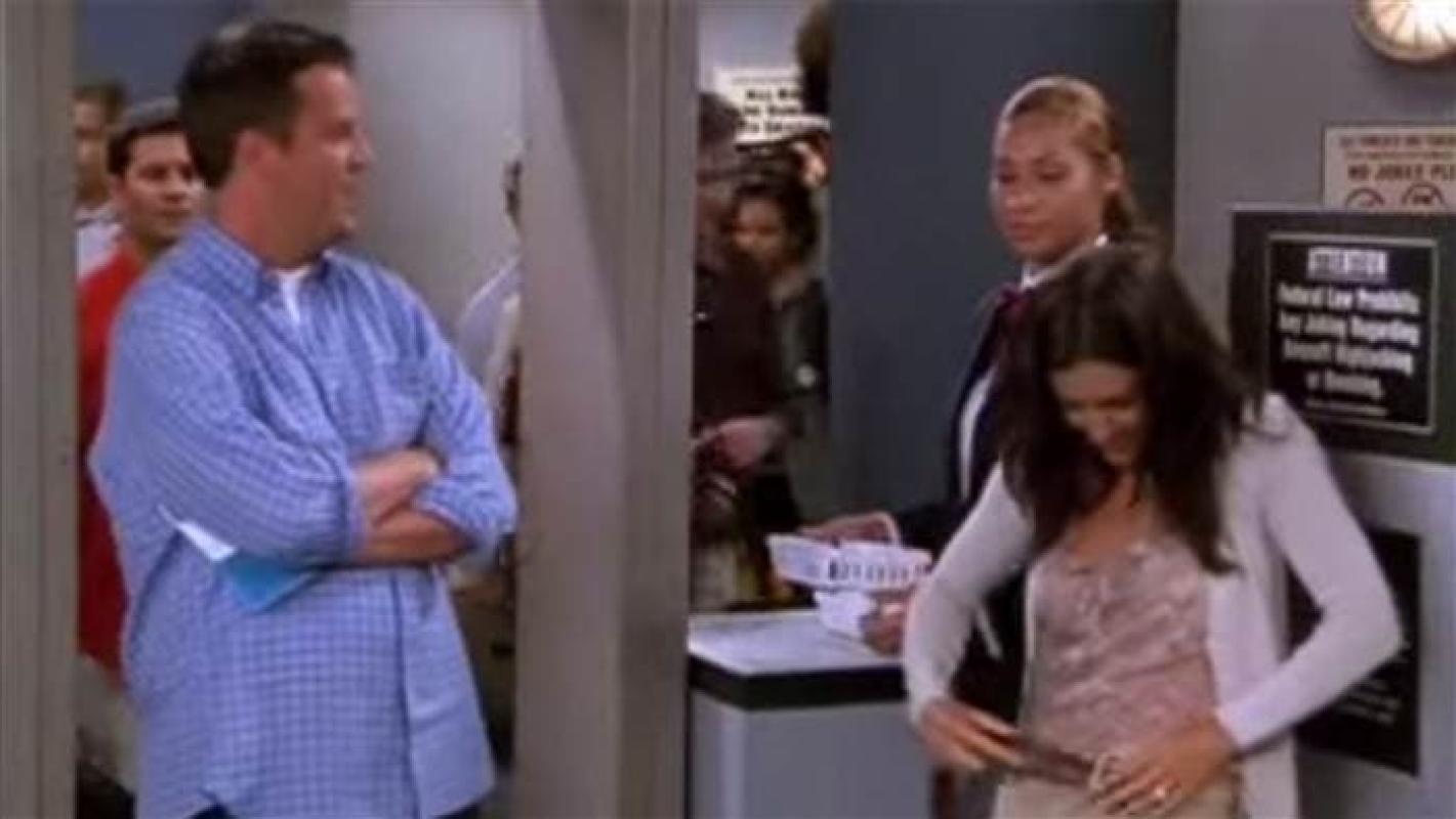 De haber salido al aire, en su momento, hubiese generado una gran polémica. Sin embargo, 11 años después, un video de YouTube tomó vuelo en la que finalmente se puede ver de qué trataba: una escena en que Mónica y Chandler se embarcan a su luna de miel en el aeropuerto. El personaje de Matthew Perry realiza una broma sobre una supuesta bomba que subirá al avión al momento de revisar el equipaje.