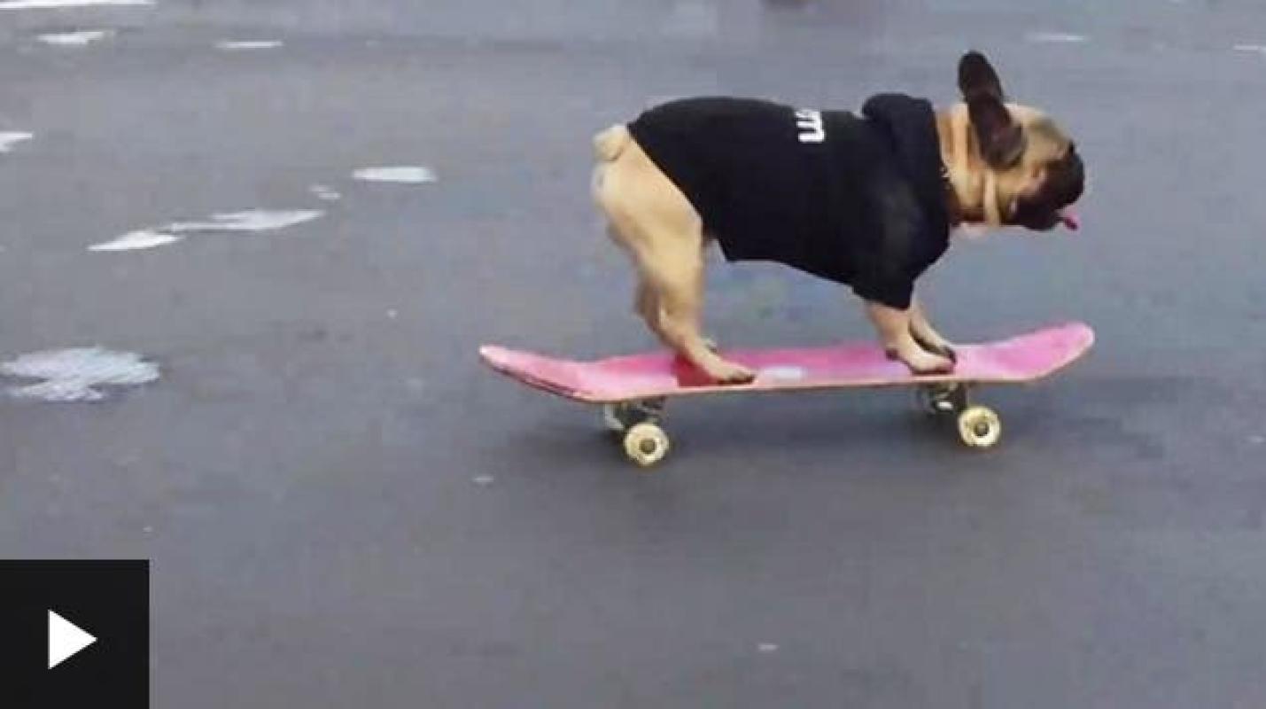 [VIDEO] El divertido talento de un cachorro de bulldog para andar en patineta