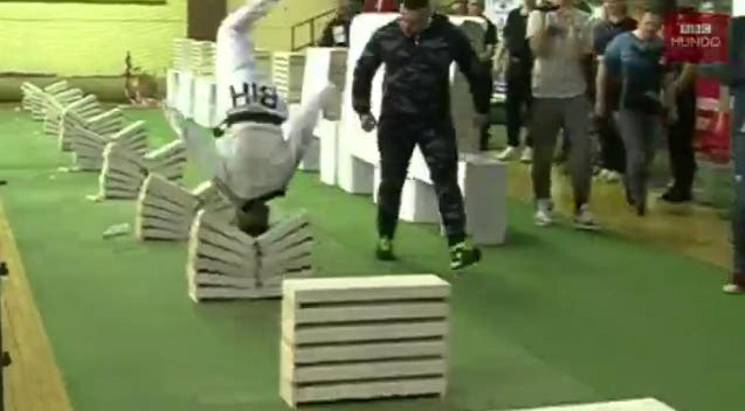 Durante 35 segundos, el joven de 16 años dio vueltas y partió a la mitad los bloques que estaban uno detrás de otro, en una sucesión de cabezazos que fueron celebrados por el público presente en el coliseo de la ciudad de Visoko, ubicada en el centro de Bosnia.